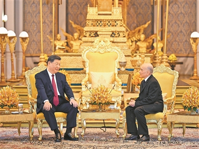 习近平强调,中方珍视同柬埔寨王室的友谊,高度评价多年来柬王室为中柬友好事业作出的重要贡献。新形势下,中柬双方要珍惜并传承中国老一辈领导人和西哈努克太皇共同缔造的中柬铁杆友谊,赋予中柬命运共同体新的时代内涵,服务各自国家发展和人民福祉,为构建周边命运共同体、推动构建人类命运共同体作出更大贡献。中方坚定支持柬埔寨保持稳定、加快发展、改善民生,走符合本国国情的发展道路,相信中国式现代化将为柬埔寨等周边国家带来更多机遇,相信构建新时代全天候中柬命运共同体一定会谱写壮丽篇章。