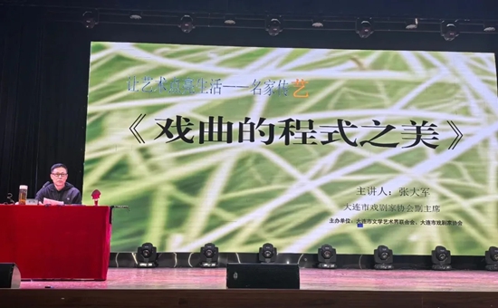 12月3日,由大连市文学艺术界联合会、大连市戏剧家协会主办,辽宁师范大学影视学院协办的“让艺术点亮生活——名家传艺”讲座在辽宁师范大学西山湖剧场举办。大连市戏剧家协会副主席、大连京剧院一级演员张大军作题为《戏曲的程式之美》的主题讲座。大连市戏剧家协会主席、大连话剧院院长于伟出席活动。来自辽宁师范大学的师生和戏剧爱好者等200余人参加活动。