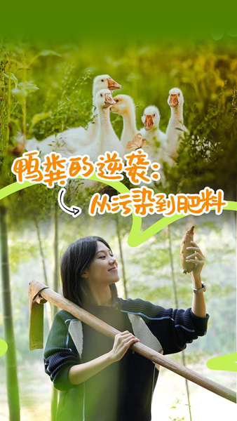 在《鸭粪的“逆袭”:从污染到化肥》中,创作者将一个严肃的生态治理课题,转化为一个充满网感和戏剧张力的“逆袭”故事。标题本身即是亮点,将“鸭粪”这一传统认知中的废弃物与“逆袭”这一青年热词结合,瞬间消解了距离感。报道没有把重点放在对生态治理成果的罗列上,而是聚焦于“污染源”变“资源宝”的曲折过程,呈现了“生态困局-治理破题-循环生金”的完整叙事弧光,让“两山”理论的深刻内涵在具象的“逆袭”故事中轻盈落地。