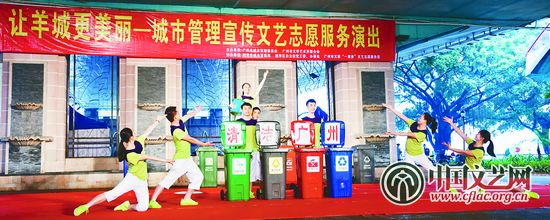 当日上午,由广州市文联、广州市城管委共同主办的“让羊城更美丽——城市管理宣传文艺志愿服务演出活动”在越秀区海印广场举行,艺术家们表演了《环保大使》《社区美》等包括舞蹈、歌曲、杂技、小品等多种形式的精彩节目,艺术家载歌载舞文艺义演,以多种艺术形式生动宣传城市管理。活动中还特设垃圾分类有奖问答环节,群众积极参与,在愉快的环境中学习到了垃圾分类的知识。