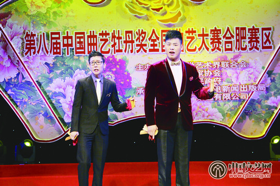 赵梓琳(右)和搭档在参加牡丹奖合肥赛区比赛上表演对口快板《招聘》