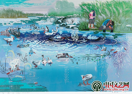 “近年来,由于各大专院校和研究机构的高度重视以及学生投入版画创作的共同努力,版画发展非常快。可能是版画市场不太景气的缘故,版画艺术家们在追求艺术上更为纯粹,相对于其他画种显得更关注艺术本身,版画家们非常尽心,安静地在搞创作。随着新技术的不断进步和画种边缘的打破,很多新的观念、新的表达方式涌现,关注艺术本身的作品也越来越多。然而,有些作品过于关注技法,淡化了内在思想和情感世界的表达。艺术语言的本体很重要,因此,要提高作品的思想内涵,要增强洞察社会和表达社会进步的能力,要更加有思想性的来表达对时代的反映。”许钦松说。