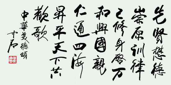 在秋高气爽、丹桂飘香的时节,9月25日至10月11日,由中国国家博物馆、中国书协和首都师范大学联合主办的欧阳中石书中华美德古训展在中国国家博物馆举办。中国国家博物馆馆长吕章申表示:“社会主义核心价值观与中华优秀传统文化一脉相承,而书法艺术则是中华优秀传统文化的精华,自古以来就有助人伦、成教化的作用。欧阳中石先生在耄耋之年以惊人之力有此创作,美德古训与其书法艺术相得益彰,既体现以‘修齐治平’为核心的传统美德精神,又适应时代发展,与其倡导的作字行文、以文载道、以书焕彩、切时如需的教学理念相契合。”
