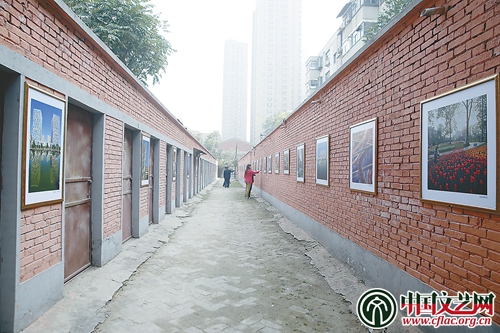 为了将这次“百姓家门口”的展览办好,工作队与社区工作人员一起实地走访,调查研究,最终决定充分利用社区现有资源,对部分家属院原来的杂物房进行粉刷改造,再加上居民车棚的外墙,共同打造了一条长约200米的“艺术长廊”——一幅幅摄影作品悬挂于此,化身成为石建社区一道亮丽的风景。