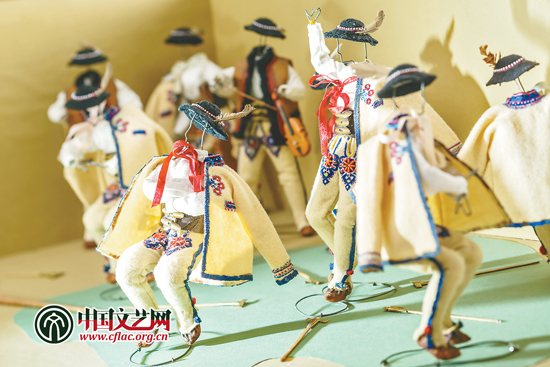 与民族服饰一同展出的还有20组为“国际民族舞蹈展”特别定制的舞蹈人偶模型。奥杰美克舞、皮匠舞、特莱帕克舞……模型身着各式民族服饰,摆出各种舞姿,活灵活现、生动有趣,不仅从侧面印证了波兰是一个能歌善舞、热情奔放的国度,也使展厅变得灵动许多。