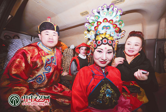 被称为“文艺轻骑兵”的内蒙古托克托县乌兰牧骑的演员们在为牧民表演前合影 新华社发 连 振 摄