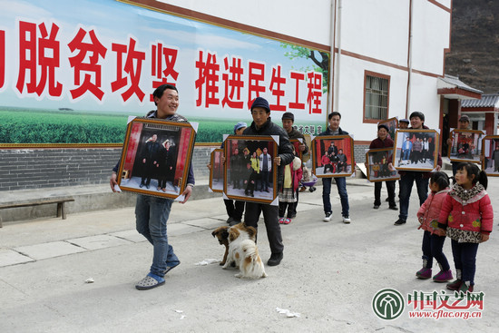 听说北京来的摄影家们又来给大家免费拍全家福,村民们奔走相告。一时间村广场上人声鼎沸。元旦期间第一批拍摄好的全家福已经装裱完成,摆满了广场。村民们认出了这是自家的照片,笑着闹着评论着,欢欢喜喜地搬回家。