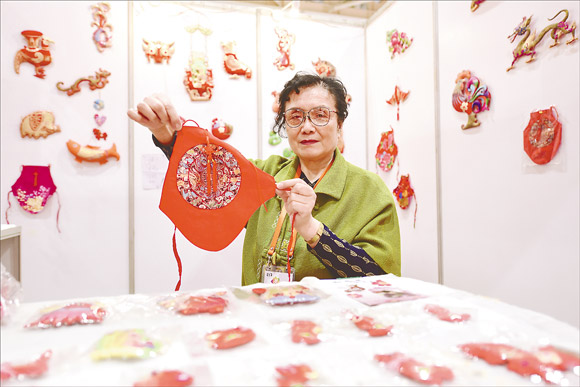 石湾陶、景德瓷是国内陶瓷艺术品的巅峰之作。这次展出的广东佛山陶瓷艺术大师们的作品,讲述了岭南陶艺“过往与今天”的故事。泥塑作品,极富夸张变化,构思周密,工艺灵巧,幽默诙谐,让人忍俊不禁。玉雕是民间艺术展示不可或缺的珍品,展出的和田玉质地细腻,刻功精巧。出自哈尔滨民间艺人孙忠琴的布艺挂件,简约而不简单,小制作里面有大手艺,引得观众揣量、拍摄、交流,集多人心智,破解制作密码;湖北民间艺术家李凤英的竹编作品,融入绘画技巧,有着极高的鉴赏、收藏、学术价值,受到观众青睐,现场收到不少订单。