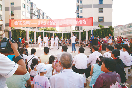 2014年7月16日,“我们的价值观——曲艺走基层全国百场巡演山西专场”的首场演出在太原小井峪街道三益社区干打垒小区举行