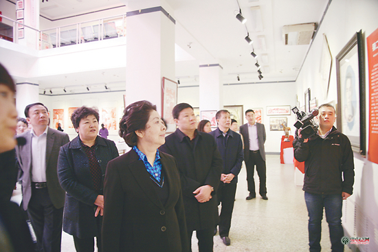 2015年3月11日,山西省委宣传部部长胡苏平参观山西省文联参与主办的“红色记忆颂太行·弊革风清倡廉政剪纸艺术作品展”