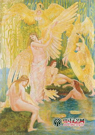 “天鹅处女”一词来源于英国的神话Swan Maidens,此图由19世纪画家Walter Crane所作。