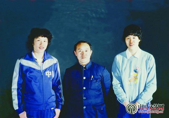 1984年,郭延民(中)采访中国女排队员郎平、杨晓君