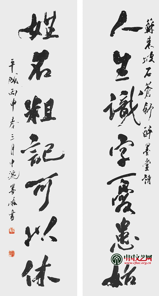 此外,国人书法家的作品也值得称道,“海外作品大部分出自海外华人同胞之笔,所以在手法上也还是传统手法。但从书法本身的技术而言,国人的作品更胜一筹,因为这些年书法在国内很热,可以说是‘全民书法’,书法活动也频繁举办,感兴趣的人多,动笔写的人自然也多,查阅资料的途径又很便捷,所以整体水平就上来了,现在有一些40岁左右的年轻人写得非常好,技法很扎实,只要在国学积淀和文化修养方面多加努力,假以时日就可以达到技道平衡。自古以来,真正的书法大家都有很深厚的文化背景。除了技法之外,书法作品还需要一种气息,如同漂亮的女孩需要有气质一样,这种气息就要依靠内修。”潘文海表示。