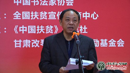 夏潮在讲话中指出,扶贫工作是党中央、国务院的一项重要战略部署。2016年7月13日,中国文联印发《关于开展“文艺扶贫奔小康”志愿服务行动的通知》,部署实施“文艺扶贫奔小康”志愿服务行动,充分发挥各级文联的组织优势和各文艺家协会的人才优势,动员广大文艺家、文艺工作者以志愿服务形式参与“脱贫攻坚”,探索文艺扶贫的新模式、助力全面建成小康社会。本次展览,书法家们以广大人民群众喜闻乐见的艺术形式,宣传脱贫攻坚战的决策部署,弘扬中华民族自强不息、扶危济困的传统美德,展示贫困地区干部群众向贫困决战的精神风貌,必将进一步唤起社会各界关注关心、支持参与脱贫攻坚的热情。随后,苏士澍、洪天云分别致辞,并为参加此次活动的书法家颁发《捐赠证书》。