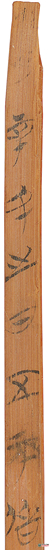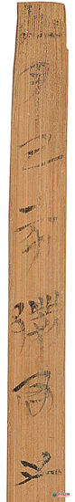 在书写方式上,总体而言,卜筮和司法文书简的制作比较精致,遣册简则相对粗糙。竹简文字的笔画较为圆转自如,轻松率意,极少方折;多数字笔锋清晰,撇、捺、挑的笔画没有明显的区别。一般笔画的下笔处重而粗,收笔处轻而细、尖。简204和简205这两枚竹简的文字,笔道线条比其它的字细,但很均匀,起笔和收笔处看不出明显的粗细差别。因此可以推断,第一,包山楚简文字是使用一种较有弹性的毛笔书写的。据记载,1954年考古学家在我国湖南长沙、河南信阳的战国楚墓里,各发现了一支竹杆毛笔,这是我国目前发现的最早的毛笔实物,笔毛是质地很好的兔箭毛,毛长约2.5厘米。兔箭毛是山兔背上一小撮弹性强、锋颖最好的毛,具有尖锐、刚劲的特点。直到今天,兔箭毛也是制作毛笔笔毫的最佳选料之一。而以山兔的兔颖为主要原料制成的毛笔,称为紫毫,其造价较高,且纯紫毫笔刚性也过强。第二,竹简上大多数字是左低右高,长的横画呈两端下垂中间上凸起、两头细中间粗,竖画呈两端向左、中间向右凸起的弓形的形态。这种形态非常符合书写者的生理习惯。有学者认为,书写者是把编连成卷的竹简拿在手中书写的,由于握笔的右手紧靠在竹简上,不能随意移动,因此产生字体倾斜的现象;笔者以为,在如此窄而薄的竹片上书写,将竹简置于案头,左手固定竹简,右手腕部枕于左手指之上来书写,类似于今天所说的“枕腕法”,才可以保证用笔稳健自如、风格一致、自然洒落,这是最为常用的方式;而拿在手中书写即类似于“悬肘法”或“悬腕法”应该是一种辅助的方法而已。