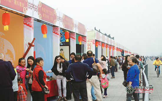 实施了人文千年重大题材美术创作工程,创作的114幅作品主题鲜明、风格多样、形式感强,在今年陕西省举办的全国第十一届艺术节上重磅推出。在北京举办了“我们的中国梦”——全国优秀艺术作品展之陕西油画、水彩、水粉画作品展览。策划了陕西相声神州行活动,先后走进上海、北京、江苏、深圳、甘肃、新疆等地,举办专场演出近20场,现场观众达2万余人。苗阜、王声携新作《这不是我的》登上中央电视台春节联欢晚会。苗阜、王声、马腾翔、李小龙多次参加中央电视台心连心艺术团慰问演出、中央电视台“五一”国际劳动节慰问演出、中国曲协“送欢笑下基层”慰问演出活动。开展了“陕西快板讲陕西故事”创作展演活动,征集新创作作品24部,其中《中国好人严平安》获第三届“南山杯”全国曲艺新人新作展演二等奖。开展了“好歌唱三秦”文化惠民活动。举办了“新起点·新亮点”摄影大赛,将其中的150余幅(组)照片制作成108块展板,先后在省委西院、西安咸阳国际机场T3航站楼进行展出,宣传陕西经济社会发展步入快车道的辉煌成就,展现“三个陕西”建设的新成效。举办了践行社会主义核心价值观全国春联征集活动,共征集到来自全国的楹联作品2226副,评出“十佳春联”8副,“优秀春联”50副。举办了“首届陕西民间工艺品博览会”,汇集了陕西省民间工艺美术家近十年创作的百余种、两千余件民间艺术精品,8天时间内参观展会的游客达15万人次。