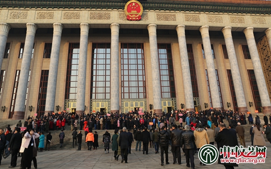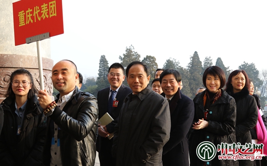 重庆代表团等待入场 中国文艺网 王渝 摄