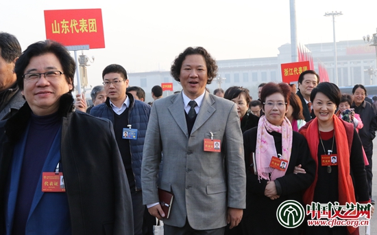 浙江、山东代表走向会场 中国文艺网 王渝 摄