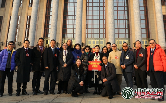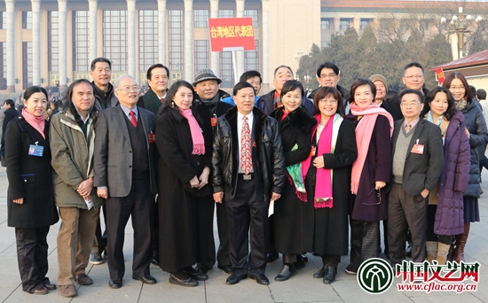 台湾地区代表团在会场外合影 中国文艺网 王渝 摄