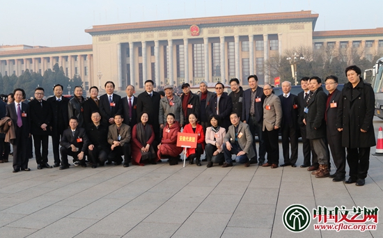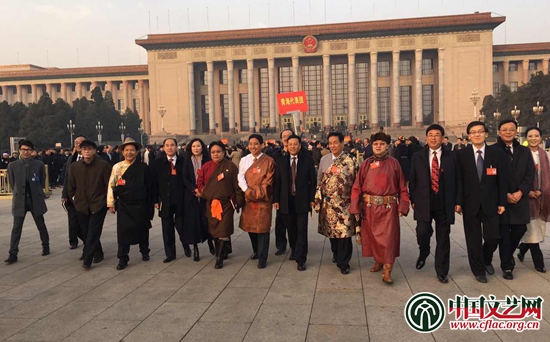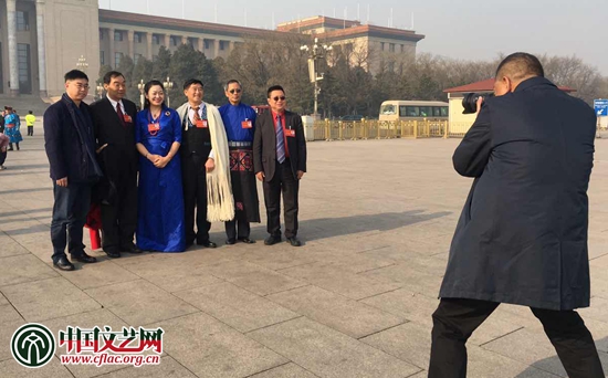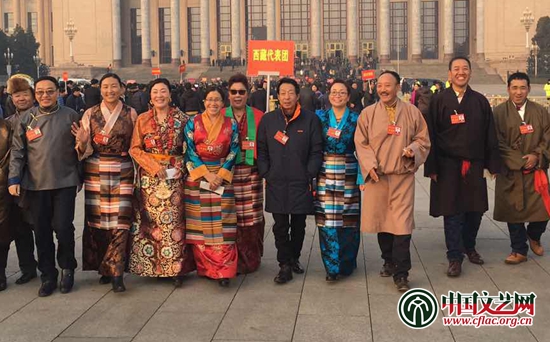 西藏代表团在会场外合影 中国文艺网 冉茂金 摄