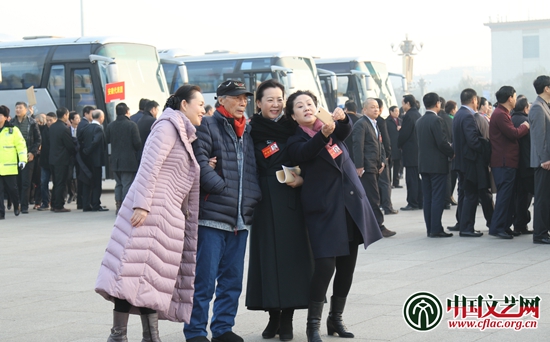 代表为代表拍照留念 中国文艺网 冉茂金 摄
