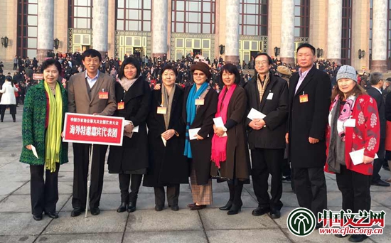 澳门特别行政区代表团在会场外合影 中国文艺网 冉茂金 摄
