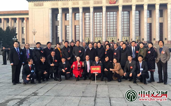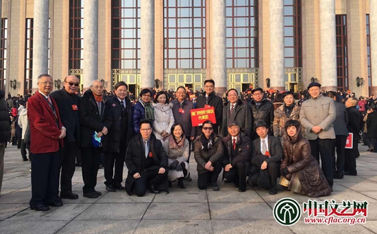 香港特别行政区代表团在会场外合影 中国文艺网 高晴 摄