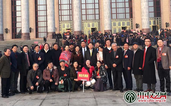 湖北代表团在会场外合影 中国文艺网 冉茂金 摄