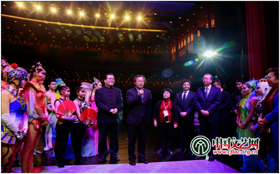 演出结束后,领导们上台与演员们亲切交谈 中国文艺网周春桃摄
