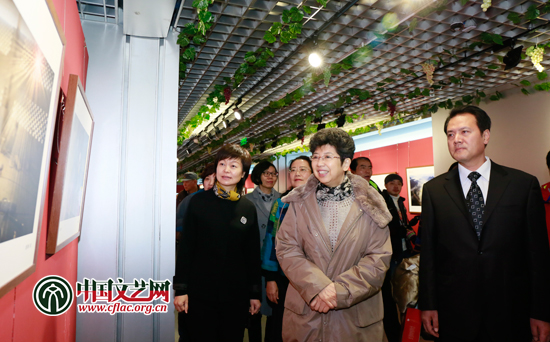 中国文联党组书记、副主席赵实,中国文联党组成员、副主席李前光,中国摄影家协会主席、分党组书记王瑶等参观展览 中国文艺网 周春桃摄