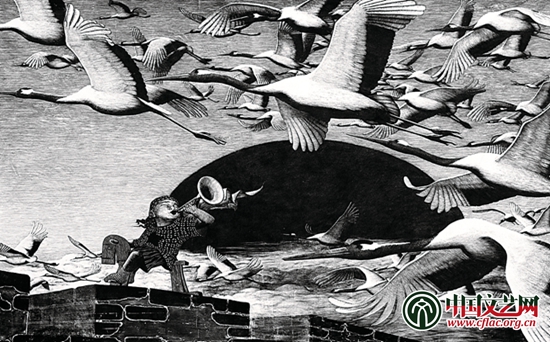 正如布鲁塞尔中国文化中心前任主任严振全所介绍的,中比两国间文化交流源远流长,从17世纪弗拉芒传教士南怀仁来中国监制古观象台,到中国民主革命伟大领导者孙中山先生在比利时驻留;从1865年利奥波德二世旅行远至中国,到埃尔热与张充仁两位艺术大家的传奇故事家喻户晓,中比两国的文化交往可谓志同道合,精彩纷呈。而今美展的成功举办为两国艺术交流续写了全新篇章。纵观此次参展作品,有的直接契合展览主题,如中国雕塑家李富军与前俄罗斯美术家协会主席阿尔伯特·恰尔金以及雕塑家瓦连金·斯维什尼可夫合作的雕塑《友谊和平天使》、方向晖的油画《中华卫士》、旅英华人艺术家曲磊磊的综合材料绘画《美丽莎——一个“9·11”受难者》;有的表现人与自然的和谐之美,如丰硕的中国画《原生态之冬后是春》,朱梅、周佰文的中国画《拾得秋色入画来》,詹国超的中国画《倾斜的大海之一》,王治平的油画《冬季》,朱锐的木刻版画《东川印象之二》,宋光华的中国画《绿色太行我家园》,赵新平的中国画《山乡初晨》,刘玉庭的雕塑《花·物语》等;有的从警醒的角度呼吁爱护生态家园,如徐邠的中国画《栖息之地之一》、张龙的中国画《呐喊——消失的地平线》、崔俊的油画《蚀》、罗志楠的油画《筷子树》、刘根的版画《集结号》、彭伟的版画《围城之居》、闫然的水彩画《渡城》、张江的漆画《天籁》等;有的传达当代中国人特有的精神世界,如王静的油画《我的情绪传达》、王凯的油画《夜归人》、朱建辉的版画《状态·存在》、陆增康的雕塑《失眠》、王仁华的中国画《暗香浮动》等;有的体现追求和平竞技的奥林匹克精神,如李爱国的中国画《辉煌——奥运之星杨霞》、王子奇的油画《和谐·中国奥运——首届奥委会成员》……中国美术家们从现实角度观察社会变迁,在精神层面感悟世间百态,生动地描绘了当代中国“机遇与挑战并存,喜悦与艰辛交织”的全景画卷。这一切都归为一个共同的主题:向往人类和平,关爱地球家园。
