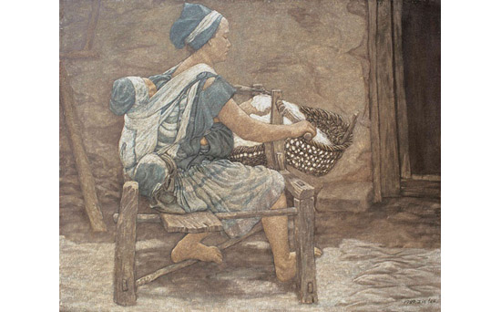 《纺棉花》 90cm×100cm 油画 1989年 谢麟