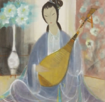 林风眠的风景画,不仅限于西湖和秋林,还有描绘松林、山村、农舍、溪流、海浪等题材,他的《风景》创作于上世纪50年代,以墨色层层渲染、以水性颜料融入浓墨,横涂竖抹,以单纯简洁的造型传情,引人进入清新、恬淡、优美而深邃的意境。这与他汲取中国民间传统艺术有着密切的联系,他将民间艺术的情趣注入绘画,带来清新而鲜活的生命力。郑智威说,林风眠笔下的仕女,多取自宋瓷流畅圆润弧线所构建的形象, 《琵琶仕女》是此类题材代表作,着色浅青或淡蓝的底上,结构线采用湿笔蘸白粉抹刷,在清冽色泽中获得一种素淡而半透明的效果,仕女衣裳罗裙的飘逸光滑感和含蓄雅姿的体态,仿佛有着唐宋瓷器素净釉色的高雅清新。整体画面构成上,以中国写意之长补结构之简,在简约、明快、素雅、轻逸的色调里,传送出琴女闺室的悠情乐韵,视觉形象中增添了一份听觉幻想。