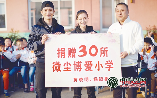 2015年10月,黄晓明、杨颖夫妇携微尘基金捐赠30所博爱小学