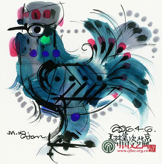 《美术》杂志社社长兼主编尚辉认为,韩美林最重要的成就是审美上的跨越。“他的书法实际是从文人到民间,或者说他能够把一种很高贵的艺术变成一种平易的艺术,在平易和高贵,在民间和文人,在传统和现代之间,他能够跨越。”尚辉以韩美林的新作《百鸡图》为例分析了其中的玄妙:“在大家熟悉的鸡的形象中,鸡的肚子通常被画得很大,但是在韩美林的《百鸡图》和百鸡雕塑中,可以看到鸡的肚子反而被缩小了,鸡冠成为他进行夸张变化的一个重要元素。鸡腿和鸡爪子在图形变化当中是比较难处理的一部分,但是韩美林能够把鸡从冠、脖子、尾巴、翅膀进行一些图形上的重新变化,从原来没有什么东西的地方变出很丰富的内容,对原来很难入手、很难进入画面的脚和爪进行艺术化的处理。这是韩美林艺术创作中实现从图像到图形的重要成就。”