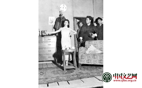 1942年,北京四一剧社暑期实行小剧院运动,《日出》排演剧照,陈光饰陈白露,郑榕(右二)饰黑三,18岁的郑榕首次扮演有名姓的角色