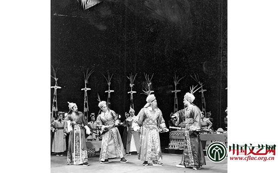 1959年北京人艺上演话剧《蔡文姬》剧照。郑榕(左二)饰演右贤王。话剧《蔡文姬》是焦菊隐着力探索中国民族传统意境美最高成就的作品