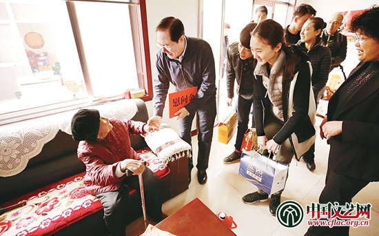 中芭采风小分队看望104高龄的沂蒙“红嫂”王换于的儿媳妇张淑珍老人 时任 摄