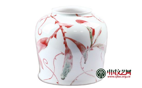 釉里红《缠枝花瓶》设计:顾明智 制作:顾慰