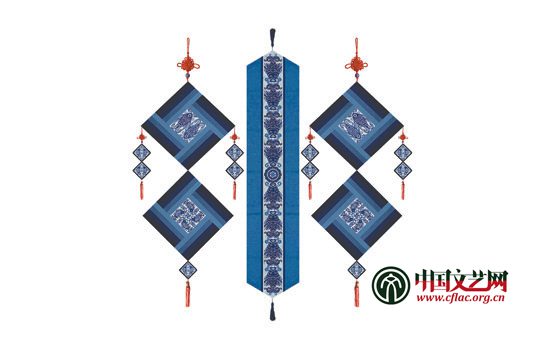 蓝印花布《吉庆有余桌旗系列》 设计:吴元新 制作:吴灵姝