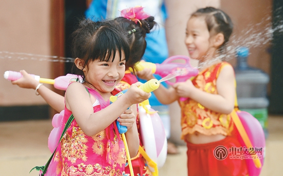 云南景谷傣族儿童欢度泼水节 新华社发 蔺以光 摄