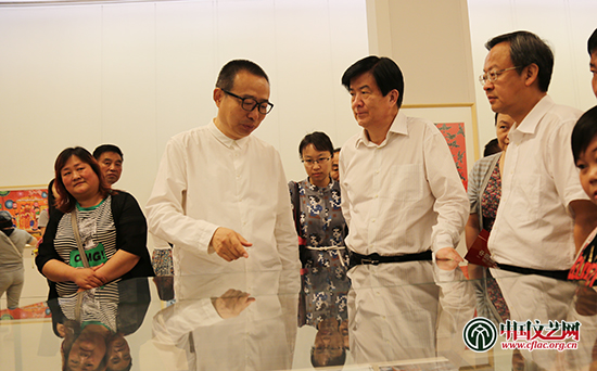 中国文联党组书记、副主席李屹,中国文联党组成员、书记处书记陈建文,中国文联副主席、中国民间文艺家协会主席潘鲁生等参观展览 中国文艺网 白伟 摄