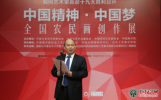 陈建文在讲话中说,长期以来,中国文联、中国民协对农民画的保护、传承和弘扬给予大力支持。希望农民画的创作者们、关心和支持农民画创作的民间文艺工作者们,胸怀大义,扎根人民、扎根生活,推出更多反映时代呼声、振奋民族精神的农民画精品力作。