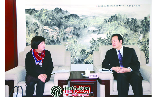 中国文联党组成员、副主席李前光(右)会见世界知识产权组织代表团