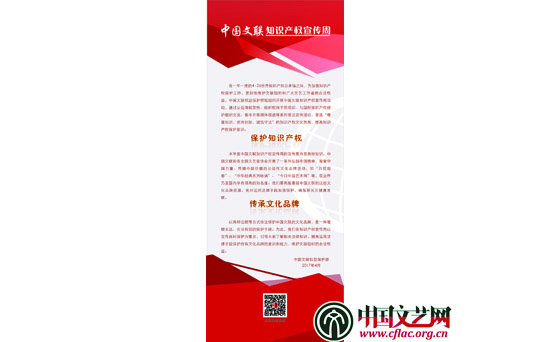 在2017年4·26世界知识产权日到来之际,中国文联权益保护部组织开展了知识产权法律宣传活动,本年度的宣传重点是商标法律知识。多年来,中国文联和各全国文艺家协会开展了一系列弘扬中国精神、凝聚中国力量、传播中国价值的公益性文化品牌活动,在业界乃至国内享有很高的知名度。我们要高度重视中国文联的这些文化品牌资源,充分运用法律手段加强保护,确保其长久健康发展。以商标注册等方式依法保护中国文联的文化品牌,是一种着眼长远、合法有效的保护手段。为此,权益保护部以宣传商标保护为重点,通过公益海报展示的方式,引导大家了解相关法律知识,提高运用法律手段保护自有文化品牌的意识和能力,维护文联组织的合法权益。