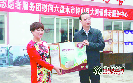 5月21日上午,文艺志愿服务团冒雨来到钟山区大河镇养老服务中心,陈建文、边发吉、王仁刚、孙德华、肖世革等领导和在此颐养天年的26位老人亲切谈心,并为每位老人送上棉被。牛群、刘全利、刘全和、徐秋、张权、李金明等艺术家为老人们倾情表演了精彩的节目。