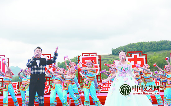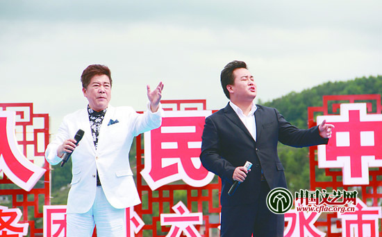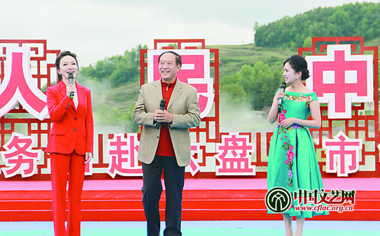 凉都国学馆水景广场上,白云作幕,青山为台,天公作美,雨过天晴。王仁刚、魏雄军、张涛在演出前分别致辞。书法家包俊宜、张铜彦、杨昌刚为六盘水人民送上书法作品,六盘水市向中国文联回赠锦旗。演出在相声表演艺术家牛群、中央电视台主持人冀星、钟山区广播电视台节目主持人阳佼君的联袂主持下拉开帷幕。
