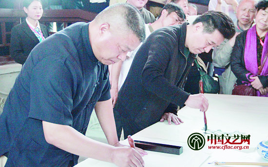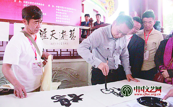 5月20日下午,文艺志愿服务团一行从机场风尘仆仆直奔钟山区凉都国学馆开展书法交流辅导活动。边发吉以“到人民中去”开笔,张铜彦、杨昌刚、刘全利、刘全和等艺术家们挥毫泼墨、笔走龙蛇,并以笔墨为媒,同当地书法爱好者进行真诚交流。