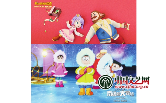 国产动画电影《我的爸爸是国王》(上图)质量尚可,但票房很难与日本动画电影《哆啦A梦之大雄的南极冰冰凉大冒险》 (下图)相抗衡