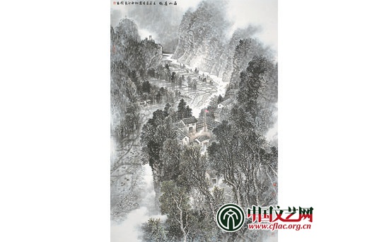 关笛毕业于华南师范大学美术系,是“九俊”中年龄最小的,但从他的作品却看不出稚嫩,甚至还让人感受到苍韵和古拙之风气,这或许得益于他书画世家的熏陶。《苗山春晓》是他本科毕业时的作品,作品以湘西的山色为背景,通过苍松、梯田、学校、红旗,诠释了今日山里人家的精神,作品获广东省高校双年展一等奖。《瑞雪》是他研究生毕业时的作品,作品取材于冬季的大别山雪景,苍穹下的山崖、挂满雪花的树梢、山下厚雪覆盖的民居,组成了这幅壮美的大别山瑞雪图,赞美了这片有着革命历史的土地和英雄的人民。